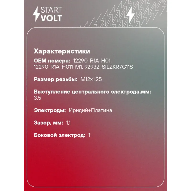Свеча зажигания для автомобилей Honda Accord VIII (08-)/CR-V IV (12-) 2.0i Ir+Pt VSP 2306 StartVolt