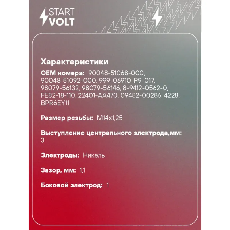 Свеча зажигания для автомобилей Honda Civic III (83-) 1.5i/Accord III (85-) 2.0i Описание: Гарантийный срок - 2 года. Характеристики: Артикул: VSP 2308 OEM номера: 98079-56132, 98079-56146, 90048-51068-000, 90048-51092-000, 999-06910-P9-017, 8-9412-0562-0, 08922-01017-83, 90098-20665, 90098-70031, 90919-01125, 90919-01126, FE82-18-110, 22401-AA470, 09482-00286, BPR6EY-11, 4228 Резистор: Есть Момент затяжки, нм: 25-30 Ширина ключа,мм: 20,6 Размер резьбы: M14x1,25 Длина резьбы,мм: 19 Выступление центрального электрода,мм: 3 Боковой электрод: 1 Электроды: Никель Зазор, мм: 1,1 Маркировка: NFP6R-V11 Комплектация: Свеча зажигания - 1 шт Паспорт изделия/гарантийный талон Гарантия: от 1 года.