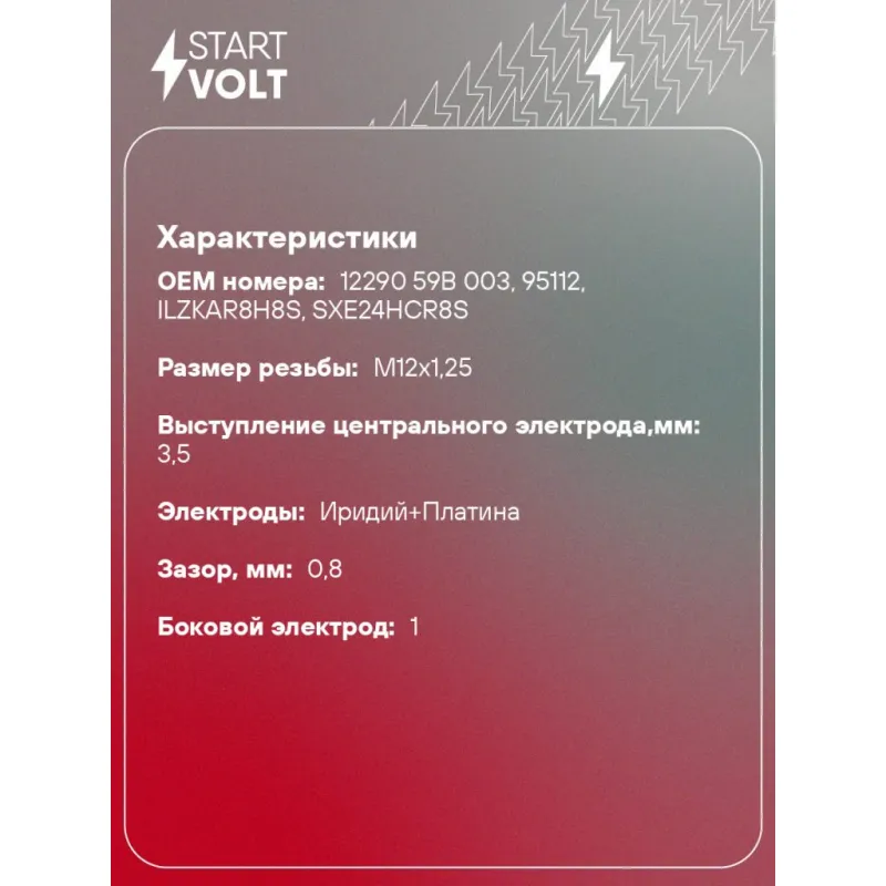 Свеча зажигания для автомобилей Honda Civic IX (16-) 1.5i/2.0i Ir+Pt Описание: Гарантийный срок - 2 года. Характеристики: Артикул: VSP 2317 OEM номера: 12290 59B 003, 95112, ILZKAR8H8S, SXE24HCR8S Резистор: Есть Момент затяжки, нм: 20-25 Ширина ключа,мм: 14 Размер резьбы: M12x1,25 Длина резьбы,мм: 28 Выступление центрального электрода,мм: 3,5 Боковой электрод: 1 Электроды: Иридий+Платина Зазор, мм: 0,8 Маркировка: IPLDP8LSAR-P Комплектация: Свеча зажигания - 1 шт Паспорт изделия/гарантийный талон Гарантия: от 1 года.