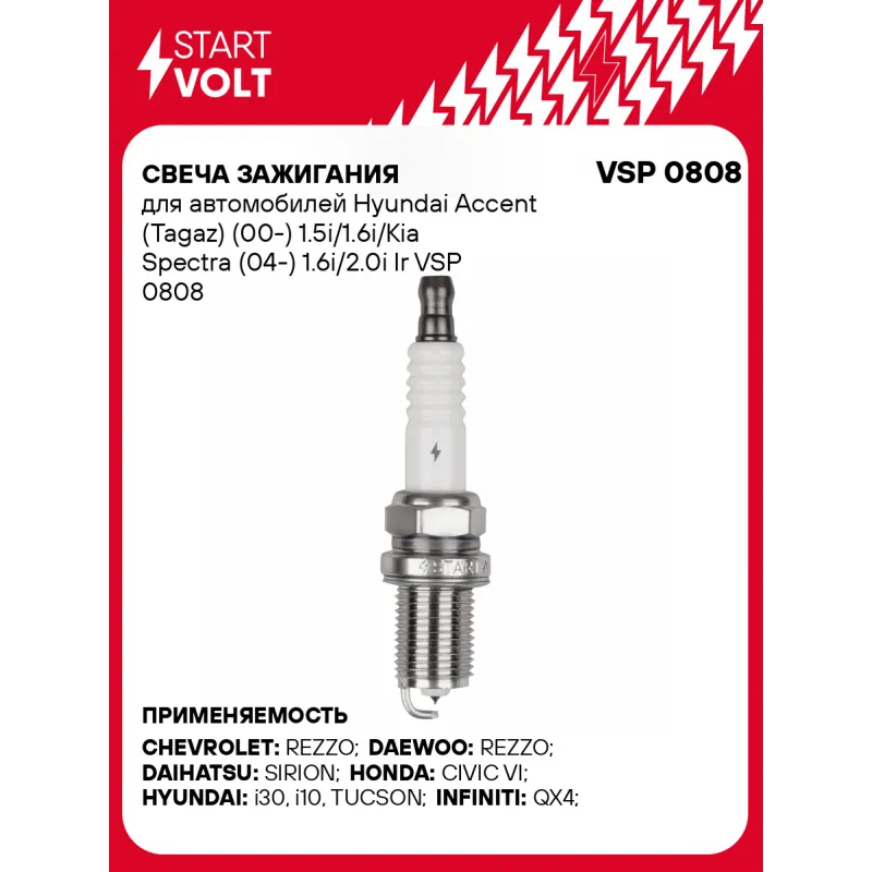 Свеча зажигания для автомобилей Hyundai Accent (Tagaz) (00-) 1.5i/1.6i/Kia Spectra (04-) 1.6i/2.0i Ir Описание: Гарантийный срок - 2 года. Характеристики: Артикул: VSP 0808 OEM номера: 99906-910X9-006, NDIK 16, NDIK 16 A, 9861-5515K, H9861-5515K, BY481-BKR5E, 8-9717-0268-0, 90098-66054, 90098-66077, 90098-66114, 0000-18-JE41, 1UD3-18-110, 1UN9-18-110, JE41-18-110, JE42-18-110, MZ 602 020, MZ 602 065, SAB 330 DE 3360, SAB 330 DE 8680, 99000-79J80-K16, 5464, BKR5EIX-11, K 16 RZ-U 11, K 16 PRZ-U 11, K 16 PR-TP 11, IK 16, I 03, D 149 Резистор: Есть Момент затяжки, нм: 25-30 Ширина ключа,мм: 16 Размер резьбы: M14x1,25 Длина резьбы,мм: 19 Выступление центрального электрода,мм: 3,2 Боковой электрод: 1 Электроды: Иридий Зазор, мм: 1,1 Маркировка: IKP5R-11 Комплектация: Свеча зажигания - 1 шт Паспорт изделия/гарантийный талон Гарантия: от 1 года.