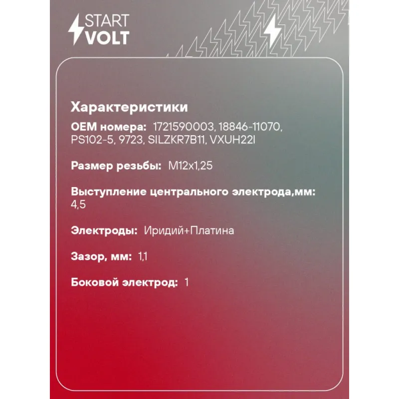 Свеча зажигания для автомобилей Hyundai Creta (16-)/ix35 (13-)/Kia Sportage (15-) 2.0i Описание: Гарантийный срок - 2 года. Характеристики: Артикул: VSP 0804 OEM номера: 1721590003, 18846-11070, PS102-5, 9723, SILZKR7B11, VXUH22I Резистор: Есть Момент затяжки, нм: 20-25 Ширина ключа,мм: 14 Размер резьбы: M12x1,25 Длина резьбы,мм: 26,5 Выступление центрального электрода,мм: 4,5 Боковой электрод: 1 Электроды: Иридий+Платина Зазор, мм: 1,1 Маркировка: IPLDKP7YR-P11 Комплектация: Паспорт изделия/гарантийный талон Свеча зажигания - 1 шт Гарантия: от 1 года.