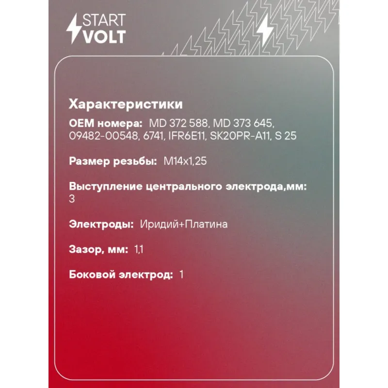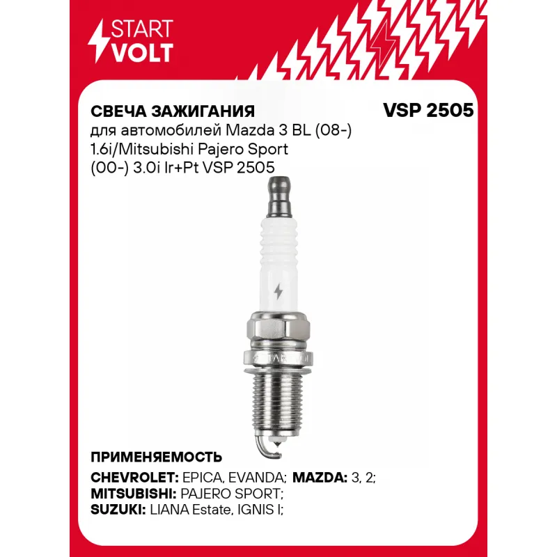 Свеча зажигания для автомобилей Mazda 3 BL (08-) 1.6i/Mitsubishi Pajero Sport (00-) 3.0i Ir+Pt VSP 2505 StartVolt