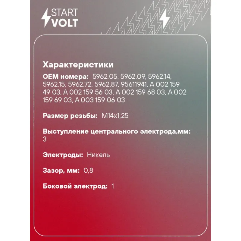 Свеча зажигания для автомобилей Mercedes-Benz E W124 (84-)/E W190 (82-) 2.0i/2.3i Описание: Гарантийный срок - 2 года. Характеристики: Артикул: VSP 1506 OEM номера: A 002 159 49 03, A 002 159 56 03, A 002 159 68 03, A 002 159 69 03, A 003 159 06 03, A 003 159 07 03, A 003 159 34 03, A 003 159 35 03, 002 159 49 03, 002 159 56 03, 002 159 68 03, 002 159 69 03, 003 159 06 03, 003 159 07 03, 003 159 34 03, 003 159 35 03, 5962.05, 5962.09, 5962.14, 5962.15, 5962.72, 5962.87, 95611941, 90098-20635, 90098-20885, 77 00 722 095, 77 00 737 458, 77 00 852 522, 77 01 021 767, 77 01 041 215, 77 01 366 137, 77 01 366 270, 77 01 366 514, 3812, BP6EFS Резистор: Нет Момент затяжки, нм: 10-20 Ширина ключа,мм: 16 Размер резьбы: M14x1,25 Длина резьбы,мм: 17,5 Выступление центрального электрода,мм: 3 Боковой электрод: 1 Электроды: Никель Зазор, мм: 0,8 Маркировка: NQP6 Комплектация: Свеча зажигания - 1 шт Паспорт изделия/гарантийный талон Гарантия: от 1 года.