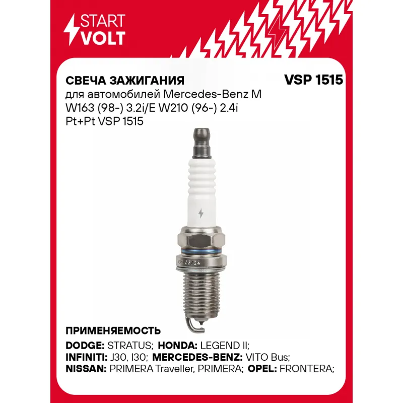 Свеча зажигания для автомобилей Mercedes-Benz M W163 (98-) 3.2i/E W210 (96-) 2.4i Pt+Pt Описание: Гарантийный срок - 2 года. Характеристики: Артикул: VSP 1515 OEM номера: 98079-5514H, 98079-5515H, 1N08-18-110, MD 313 442, 22401-1P115, 22401-1P175, 22401-1P175-Q0, 22401-1P175-VA, 09482-00540, 2647, PFR5G-11, PK16PR-L11 Резистор: Есть Момент затяжки, нм: 25-30 Ширина ключа,мм: 16 Размер резьбы: M14x1,25 Длина резьбы,мм: 19 Выступление центрального электрода,мм: 3 Боковой электрод: 1 Электроды: Платина+Платина Зазор, мм: 1,1 Маркировка: PPKP5ER-P11 Комплектация: Свеча зажигания - 1 шт Паспорт изделия/гарантийный талон Гарантия: от 1 года.