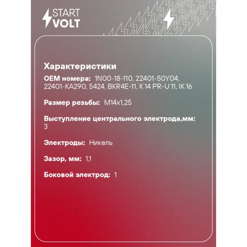 Свеча зажигания для автомобилей Nissan Almera N16 (00-) 1.5i/1.8i Описание: Гарантийный срок - 2 года. Характеристики: Артикул: VSP 1425 OEM номера: 1N00-18-110, 22401-50Y04, 22401-KA290, 5424, BKR4E-11, K 14 PR-U 11, IK 16 Резистор: Есть Момент затяжки, нм: 25-30 Ширина ключа,мм: 16 Размер резьбы: M14x1,25 Длина резьбы,мм: 19 Выступление центрального электрода,мм: 3 Боковой электрод: 1 Электроды: Никель Зазор, мм: 1,1 Маркировка: NKP4R-V11 Комплектация: Паспорт изделия/гарантийный талон Свеча зажигания - 1 шт Гарантия: от 1 года.