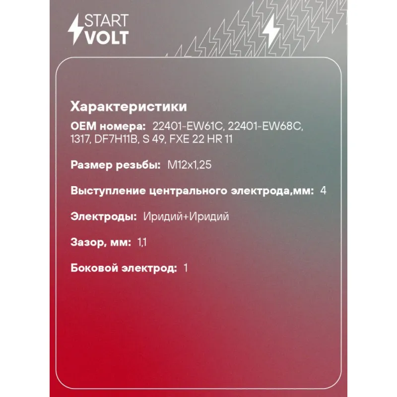 Свеча зажигания для автомобилей Nissan Murano II (10-) 3.5i/Infiniti QX50 (14-) 2.5i Ir+Ir Описание: Гарантийный срок - 2 года. Характеристики: Артикул: VSP 1417 OEM номера: 22401-EW61C, 22401-EW68C, 1317, DF7H-11B, S 49, FXE 22 HR 11 Резистор: Есть Момент затяжки, нм: 20-25 Ширина ключа,мм: 14 Размер резьбы: M12x1,25 Длина резьбы,мм: 26,5 Выступление центрального электрода,мм: 4 Боковой электрод: 1 Электроды: Иридий+Иридий Зазор, мм: 1,1 Маркировка: IILDP7YBR-I11 Комплектация: Паспорт изделия/гарантийный талон Свеча зажигания - 1 шт Гарантия: от 1 года.