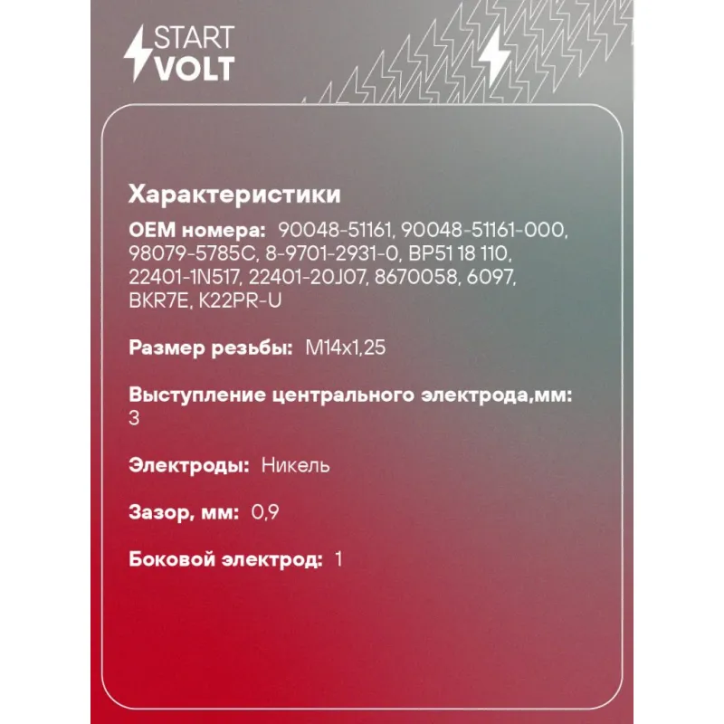 Свеча зажигания для автомобилей Nissan Primera P11 (96-)/Almera N15 (95-) 1.4i/1.6i Описание: Гарантийный срок - 2 года. Характеристики: Артикул: VSP 1423 OEM номера: 90048-51161, 90048-51161-000, 98079-5785C, 8-9701-2931-0, BP51 18 110, 22401-1N517, 22401-20J07, 8670058, 6097, BKR7E, K22PR-U Резистор: Есть Момент затяжки, нм: 25-30 Ширина ключа,мм: 16 Размер резьбы: M14x1,25 Длина резьбы,мм: 19 Выступление центрального электрода,мм: 3 Боковой электрод: 1 Электроды: Никель Зазор, мм: 0,9 Маркировка: NKP7R-V Комплектация: Паспорт изделия/гарантийный талон Свеча зажигания - 1 шт Гарантия: от 1 года.