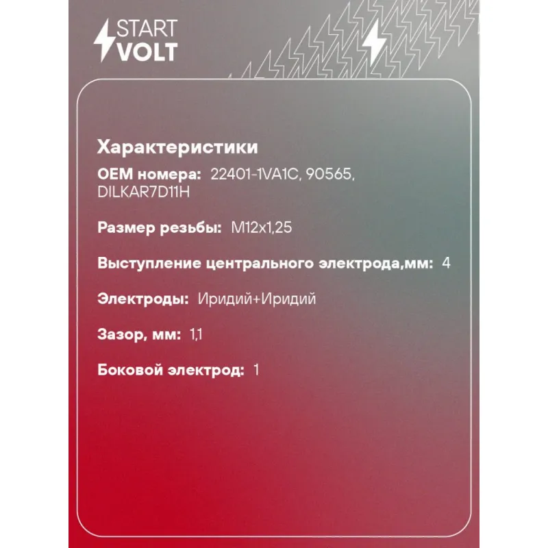 Свеча зажигания для автомобилей Nissan Qashqai J11 (14-)/X-Trail T32 (14-) 2.0i Ir+Ir Описание: Гарантийный срок - 2 года. Характеристики: Артикул: VSP 1412 OEM номера: 22401-1VA1C, 90565, DILKAR7D11H Резистор: Есть Момент затяжки, нм: 20-25 Ширина ключа,мм: 14 Размер резьбы: M12x1,25 Длина резьбы,мм: 28,5 Выступление центрального электрода,мм: 4 Боковой электрод: 1 Электроды: Иридий+Иридий Зазор, мм: 1,1 Маркировка: IILDP7LYHR-I11 Комплектация: Свеча зажигания - 1 шт Паспорт изделия/гарантийный талон Гарантия: от 1 года.