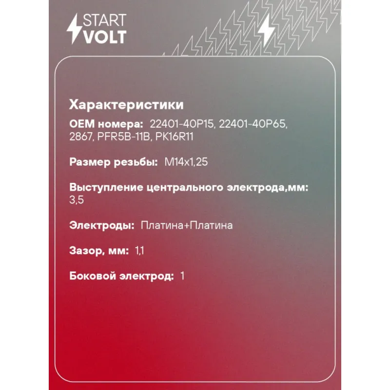 Свеча зажигания для автомобилей Nissan Sunny B14 (94-) 1.5i Pt+Pt VSP 1431 StartVolt