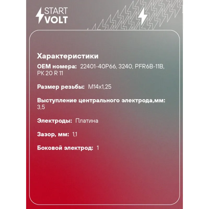 Свеча зажигания для автомобилей Nissan Sunny B14 (94-) 1.5i Pt VSP 1432 StartVolt