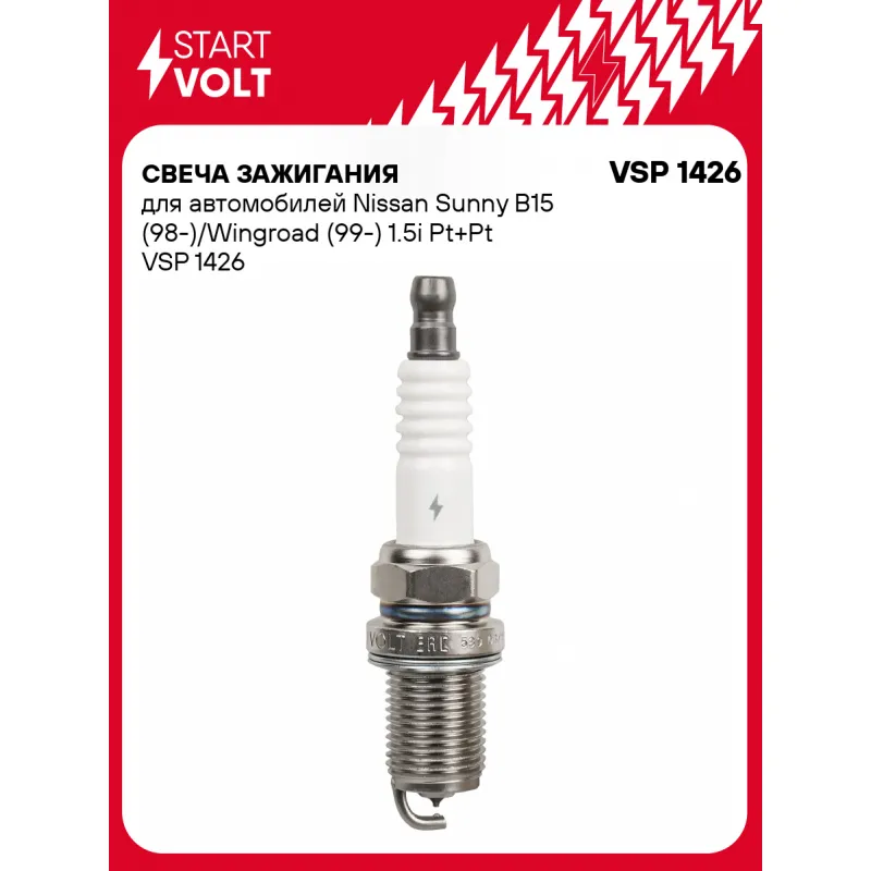 Свеча зажигания для автомобилей Nissan Sunny B15 (98-)/Wingroad (99-) 1.5i Pt+Pt Описание: Гарантийный срок - 2 года. Характеристики: Артикул: VSP 1426 OEM номера: 1N07-18-110, 22401-1P114, 22401-27N64, 22401-AG214, 5240, PFR4G-11 Резистор: Есть Момент затяжки, нм: 25-30 Ширина ключа,мм: 16 Размер резьбы: M14x1,25 Длина резьбы,мм: 19 Выступление центрального электрода,мм: 3 Боковой электрод: 1 Электроды: Платина+Платина Зазор, мм: 1,1 Маркировка: PPKP4R-P11 Комплектация: Паспорт изделия/гарантийный талон Свеча зажигания - 1 шт Гарантия: от 1 года.