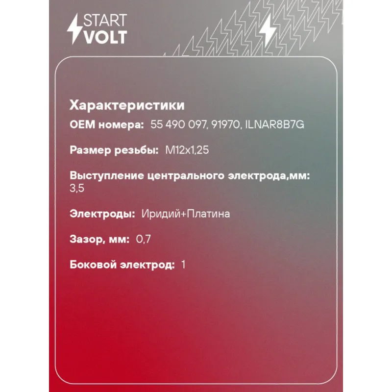 Свеча зажигания для автомобилей Opel Insignia A (08-) 1.6T Ir+Pt Описание: Гарантийный срок - 2 года. Характеристики: Артикул: VSP 2106 OEM номера: 55 490 097, 91970, ILNAR8B7G Резистор: Есть Момент затяжки, нм: 10-15 Ширина ключа,мм: 14 Размер резьбы: M12x1,25 Длина резьбы,мм: 25 Выступление центрального электрода,мм: 3,5 Боковой электрод: 1 Электроды: Иридий+Платина Зазор, мм: 0,7 Маркировка: IPQRP8R-P7 Комплектация: Паспорт изделия/гарантийный талон Свеча зажигания - 1 шт Гарантия: от 1 года.