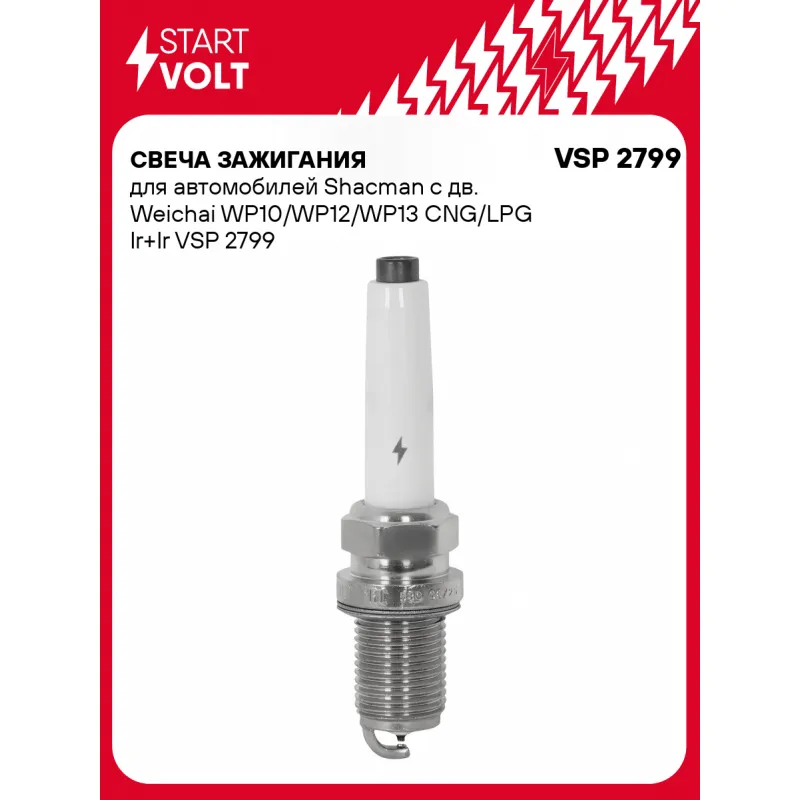 Свеча зажигания для автомобилей Shacman с дв. Weichai WP10/WP12/WP13 CNG/LPG Ir+Ir Описание: Гарантийный срок - 2 года. Характеристики: Артикул: VSP 2799 OEM номера: 1003373173 Размер резьбы: М14x1.25 Резистор: Есть Момент затяжки, нм: 25-30 Ширина ключа,мм: 16 Длина резьбы,мм: 19 Выступление центрального электрода,мм: 2.8 Электроды: Иридий+Иридий Зазор, мм: 0.4 Боковой электрод: 1 Маркировка: IIKP9ER-I4 Комплектация: Свеча зажигания - 1 шт Гарантия: от 1 года.