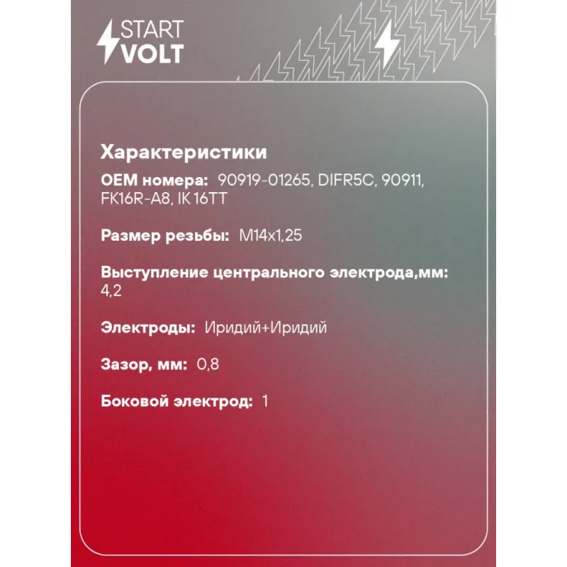 Свеча зажигания для автомобилей Toyota Aqua (11-) 1.5i Ir+Ir Описание: Гарантийный срок - 2 года. Характеристики: Артикул: VSP 1925 OEM номера: 90919-01265, DIFR5C, 90911, FK16R-A8, IK 16TT Резистор: Есть Момент затяжки, нм: 25-30 Ширина ключа,мм: 16 Размер резьбы: M14x1,25 Длина резьбы,мм: 19 Выступление центрального электрода,мм: 4,2 Боковой электрод: 1 Электроды: Иридий+Иридий Зазор, мм: 0,8 Маркировка: IIKP5R-I Комплектация: Паспорт изделия/гарантийный талон Свеча зажигания - 1 шт Гарантия: от 1 года.