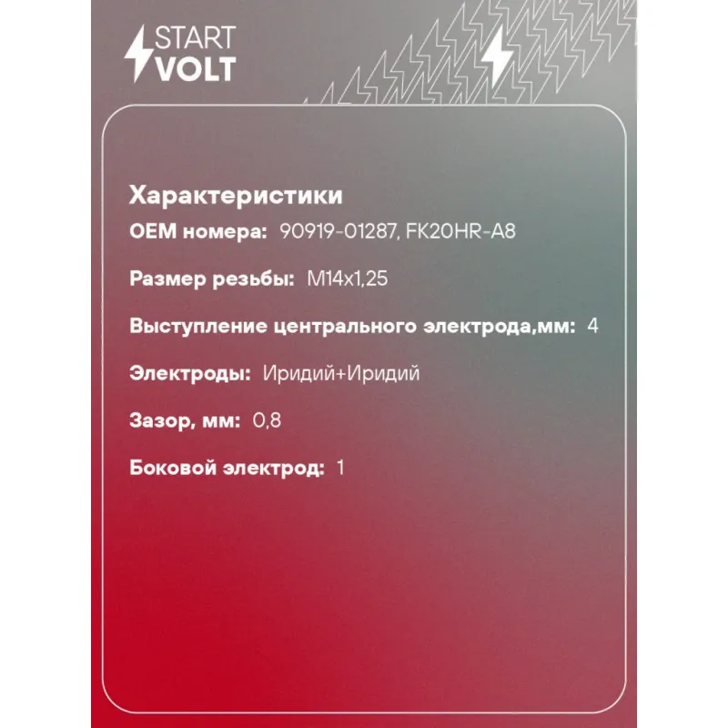 Свеча зажигания для автомобилей Toyota Land Cruiser Prado J150 (09-)/Fortuner (15-) 2.7i Ir+Ir Описание: Гарантийный срок - 2 года. Характеристики: Артикул: VSP 1918 OEM номера: 90919-01287, FK20HR-A8 Резистор: Есть Момент затяжки, нм: 25-30 Ширина ключа,мм: 16 Размер резьбы: M14x1,25 Длина резьбы,мм: 26,5 Выступление центрального электрода,мм: 4 Боковой электрод: 1 Электроды: Иридий+Иридий Зазор, мм: 0,8 Маркировка: IIKHP6R-I Комплектация: Свеча зажигания - 1 шт Паспорт изделия/гарантийный талон Гарантия: от 1 года.