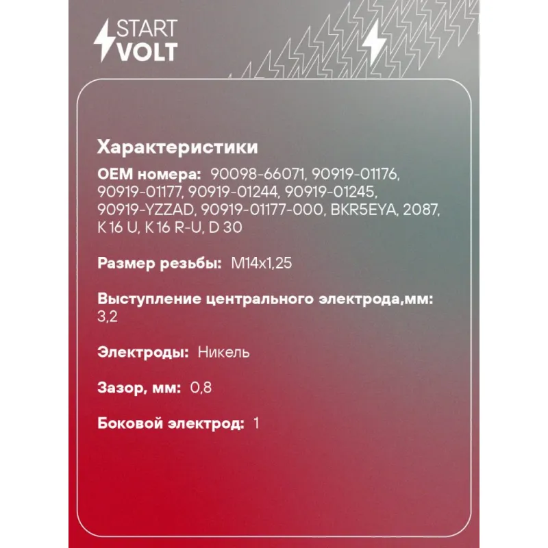 Свеча зажигания для автомобилей Toyota Yaris (05-) 1.3i/Yaris (99-) 1.0i Описание: Гарантийный срок - 2 года. Характеристики: Артикул: VSP 1912 OEM номера: 90098-66071, 90919-01176, 90919-01177, 90919-01244, 90919-01245, 90919-YZZAD, 90919-01177-000, BKR5EYA, 2087, K 16 U, K 16 R-U, D 30 Резистор: Есть Момент затяжки, нм: 25-30 Ширина ключа,мм: 16 Размер резьбы: M14x1,25 Длина резьбы,мм: 19 Выступление центрального электрода,мм: 3,2 Боковой электрод: 1 Электроды: Никель Зазор, мм: 0,8 Маркировка: NKP5AR-V Комплектация: Свеча зажигания - 1 шт Паспорт изделия/гарантийный талон Гарантия: от 1 года.
