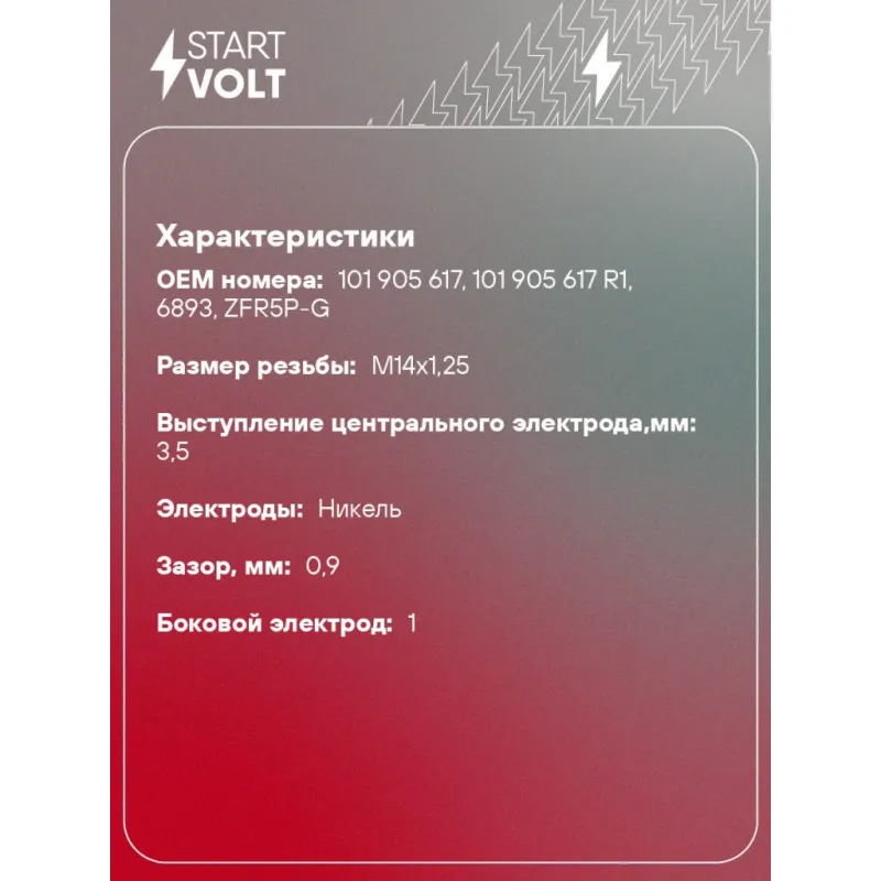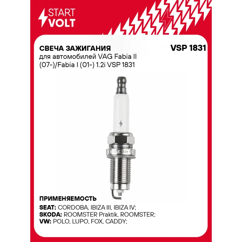Свеча зажигания для автомобилей VAG Fabia II (07-)/Fabia I (01-) 1.2i Описание: Гарантийный срок - 2 года. Характеристики: Артикул: VSP 1831 OEM номера: 101 905 617, 101 905 617 R1, 6893, ZFR5P-G Резистор: Есть Момент затяжки, нм: 25-30 Ширина ключа,мм: 16 Размер резьбы: M14x1,25 Длина резьбы,мм: 22 Выступление центрального электрода,мм: 3,5 Боковой электрод: 1 Электроды: Никель Зазор, мм: 0,9 Маркировка: NKP5LR Комплектация: Свеча зажигания - 1 шт Паспорт изделия/гарантийный талон Гарантия: от 1 года.