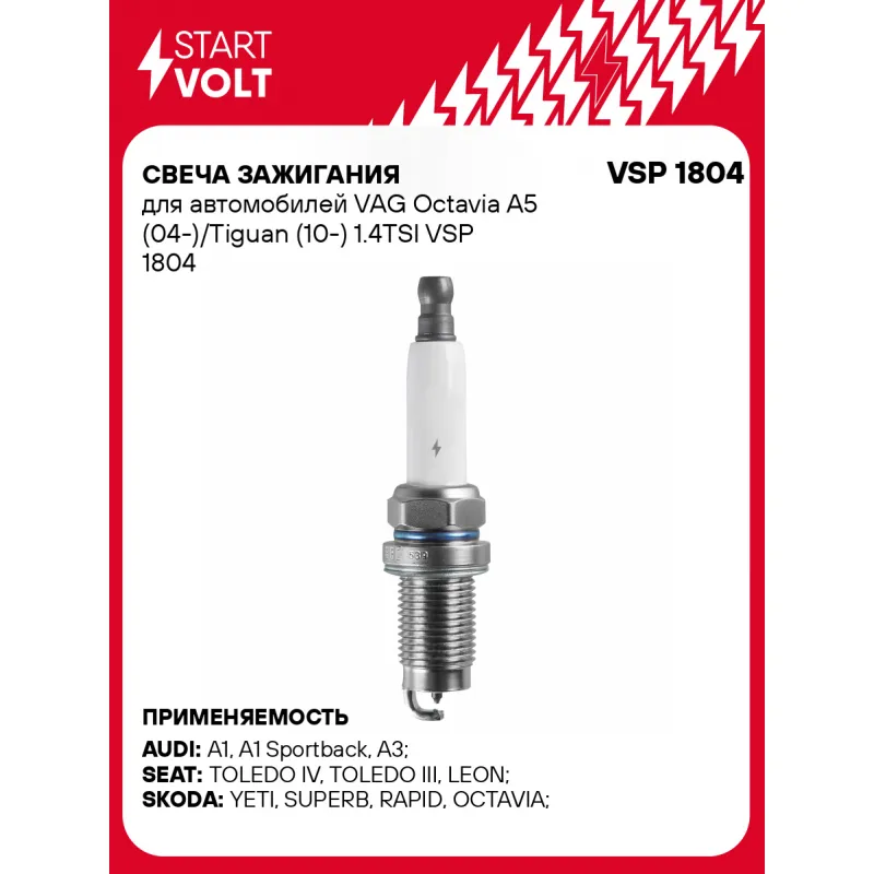 Свеча зажигания для автомобилей VAG Octavia A5 (04-)/Tiguan (10-) 1.4TSI Описание: Гарантийный срок - 2 года. Характеристики: Артикул: VSP 1804 OEM номера: 101 905 626, 5758, PZFR6R, PKJ 20 CR 8 Резистор: Есть Момент затяжки, нм: 25-30 Ширина ключа,мм: 16 Размер резьбы: M14x1,25 Длина резьбы,мм: 22 Выступление центрального электрода,мм: 2,7 Боковой электрод: 1 Электроды: Платина+Платина Зазор, мм: 0,9 Маркировка: PPKP6LR-P9 Комплектация: Паспорт изделия/гарантийный талон Свеча зажигания - 1 шт Гарантия: от 1 года.