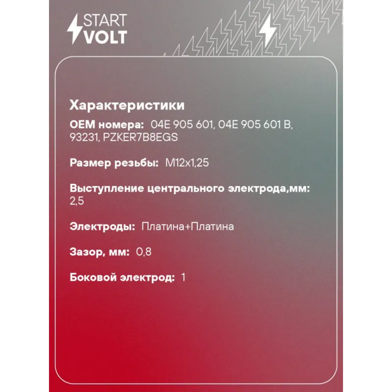 Свеча зажигания для автомобилей VAG Octavia A7 (12-)/Rapid (12-) 1.4TSI Описание: Гарантийный срок - 2 года. Характеристики: Артикул: VSP 1806 OEM номера: 04E 905 601, 04E 905 601 B, PZKER7B8EGS, 93231 Резистор: Есть Момент затяжки, нм: 20-25 Ширина ключа,мм: 16 Размер резьбы: M12x1,25 Длина резьбы,мм: 21,5 Выступление центрального электрода,мм: 2,5 Боковой электрод: 1 Электроды: Платина+Платина Зазор, мм: 0,8 Маркировка: PPDKP7LSER-P Комплектация: Паспорт изделия/гарантийный талон Свеча зажигания - 1 шт Гарантия: от 1 года.
