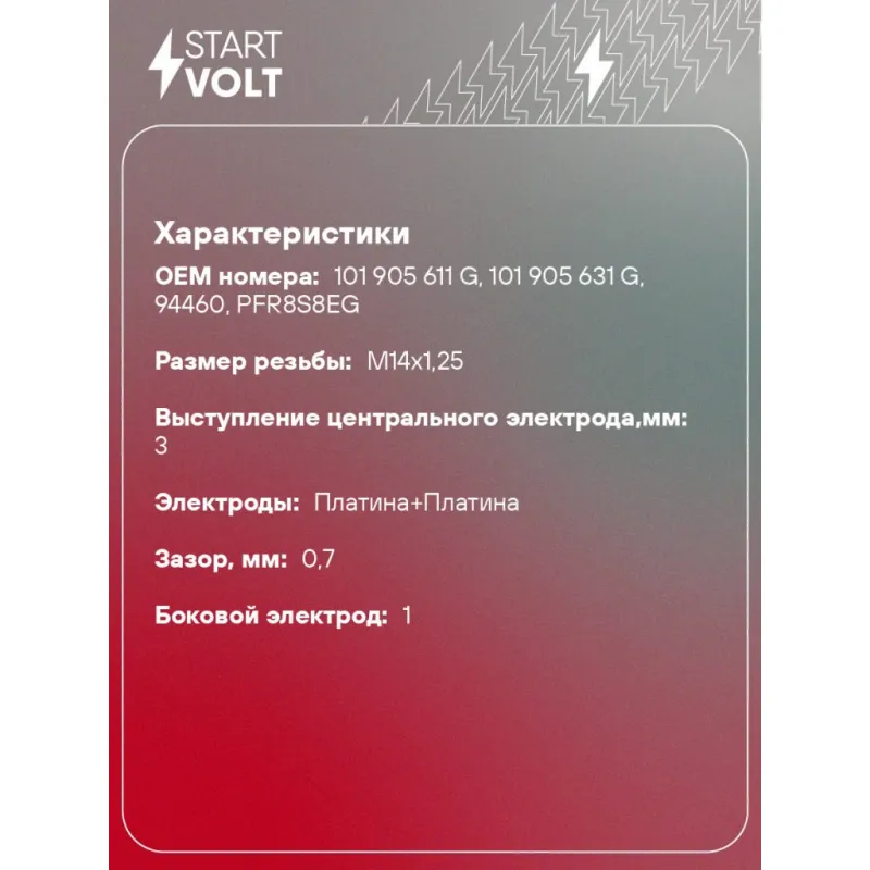 Свеча зажигания для автомобилей VAG Tiguan (07-)/Q3 (11-) 2.0TFSI/Yeti (09-) 1.8TFSI Pt+Pt VSP 1823 StartVolt