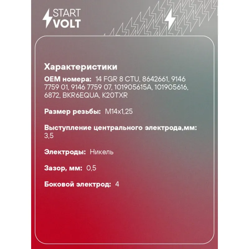 Свеча зажигания для автомобилей VAG Touareg (02-)/A8 (02-) 4.2i VSP 1837 StartVolt