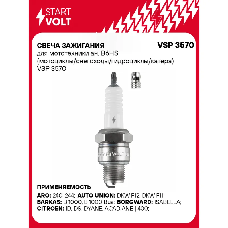 Свеча зажигания для мототехники ан. B6HS (мотоциклы/снегоходы/гидроциклы/катера) Характеристики: Артикул: VSP 3570 OEM номера: 7567.57, 95 605 398, AM 212 207 A, 90048-51022-000, 98076-56710, 98076-56711, 98076-56740, 98076-56741, 0190-18-110, MS 851 133, 77 01 366 533, 82054-1810, 82054-1812, 09482-00095, 09482-00190, 90098-20645, 823 70 M1, 4510, B6HS, M 45 W, M 45 X, 000.80.071, 13451-67710, 13451-67716, 13582-67711, 90890-78094, 94700-00039, 94701-00039, 94702-00039, 94702-00391-0, 94703-00039, 160110-78011, 9207 0007, 9207 02116, E 9207 0007, E 9207 02116, W 20 FP-U Резистор: Нет Момент затяжки, нм: 25-30 Ширина ключа,мм: 20,6 Размер резьбы: M14x1,25 Длина резьбы,мм: 12,7 Выступление центрального электрода,мм: 1,2 Боковой электрод: 1 Электроды: Никель Зазор, мм: 0,7 Маркировка: NE6-7 Комплектация: Свеча зажигания - 1 шт Паспорт изделия/гарантийный талон Гарантия: от 1 года.