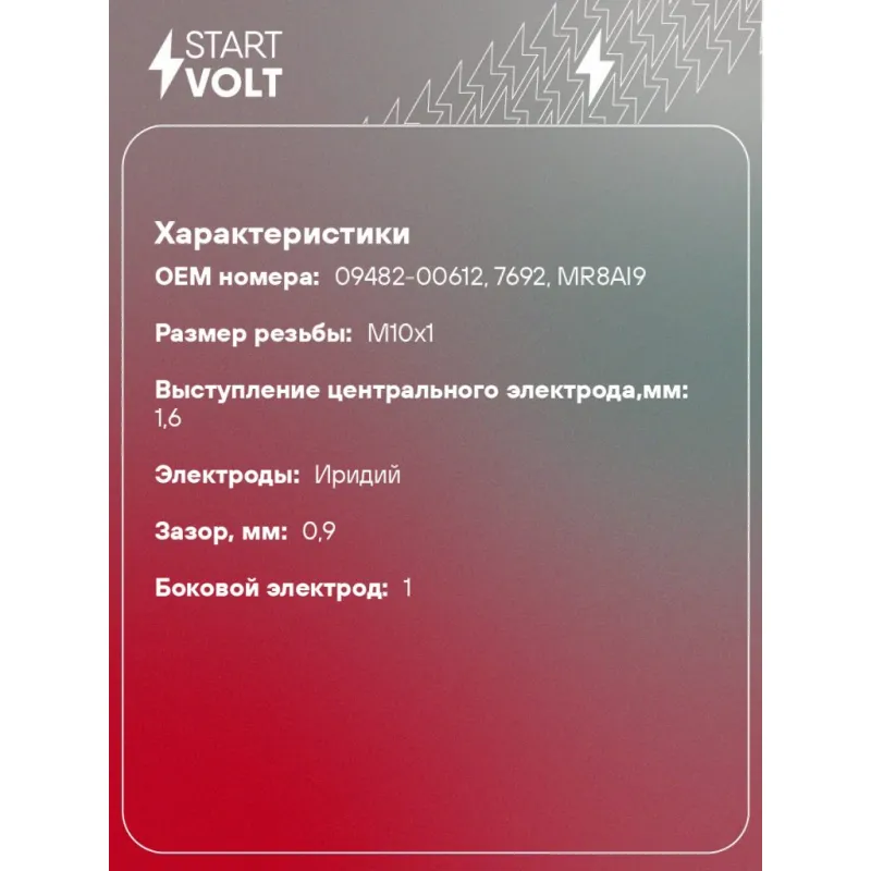 Свеча зажигания для мототехники Arctic Cat BearCat Z1 аналог MR8AI9 Ir Описание: Гарантийный срок - 2 года. Характеристики: Артикул: VSP 3533 OEM номера: 09482-00612, 7692, MR8AI9 Резистор: Есть Момент затяжки, нм: 10-15 Ширина ключа,мм: 16 Размер резьбы: M10x1 Длина резьбы,мм: 19 Выступление центрального электрода,мм: 1,6 Боковой электрод: 1 Электроды: Иридий Зазор, мм: 0,9 Маркировка: IBP8R-9 Комплектация: Паспорт изделия/гарантийный талон Свеча зажигания - 1 шт Гарантия: от 1 года.