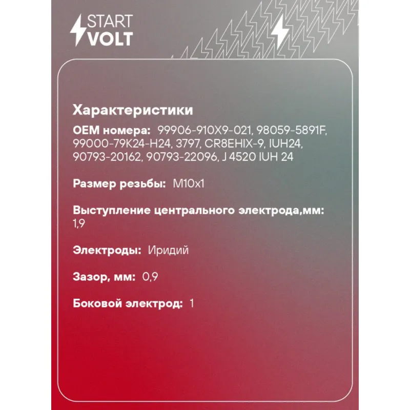 Свеча зажигания для мототехники Honda/Hyosung/Daelim ан. CR8EHIX-9 Ir VSP 3546 StartVolt