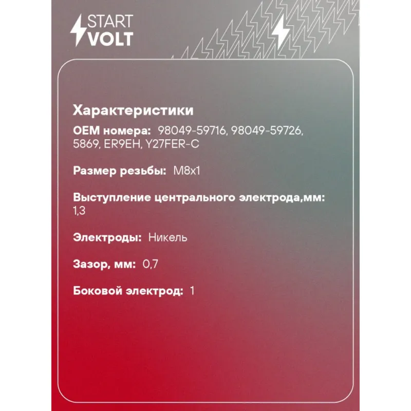 Свеча зажигания для мототехники Honda NR (92-)/RVF (94-)/VFR (89-) ан. ER9EH Описание: Гарантийный срок - 2 года. Характеристики: Артикул: VSP 3549 OEM номера: 98049-59716, 98049-59726, 5869, ER9EH, Y27FER-C Резистор: Есть Момент затяжки, нм: 10-15 Ширина ключа,мм: 13 Размер резьбы: M8x1 Длина резьбы,мм: 19 Выступление центрального электрода,мм: 1,3 Боковой электрод: 1 Электроды: Никель Зазор, мм: 0,7 Маркировка: NJAP9HR-7 Комплектация: Паспорт изделия/гарантийный талон Свеча зажигания - 1 шт Гарантия: от 1 года.