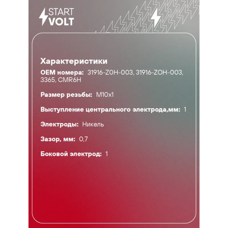 Свеча зажигания для садовой техники Stihl ан. CMR6H Описание: Гарантийный срок - 2 года. Характеристики: Артикул: VSP 3523 OEM номера: 31916-Z0H-003, 31916-ZOH-003, 3365, CMR6H Резистор: Есть Момент затяжки, нм: 10-15 Ширина ключа,мм: 16 Размер резьбы: M10x1 Длина резьбы,мм: 12,7 Выступление центрального электрода,мм: 1 Боковой электрод: 1 Электроды: Никель Зазор, мм: 0,7 Маркировка: NAM6R-7 Комплектация: Паспорт изделия/гарантийный талон Свеча зажигания - 1 шт Гарантия: от 1 года.