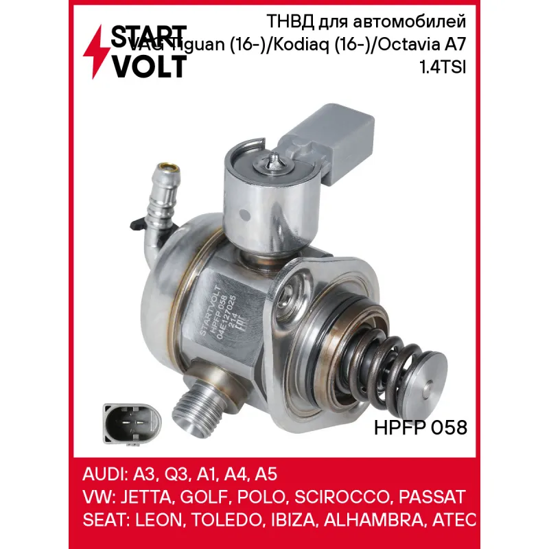 ТНВД для автомобилей VAG Tiguan (16-)/Kodiaq (16-)/Octavia A7 (12-) 1.4TSI Характеристики: Артикул: HPFP 058 OEM номера: 04E 127 025, 04E127025A, 04E127025B, 04E127025D, 0261520572 Количество на автомобиль: 1 Номинальное напряжение, В: 14 Комплектация: Бензиновый ТНВД - 1 шт Паспорт изделия/гарантийный талон Гарантия: от 1 года.