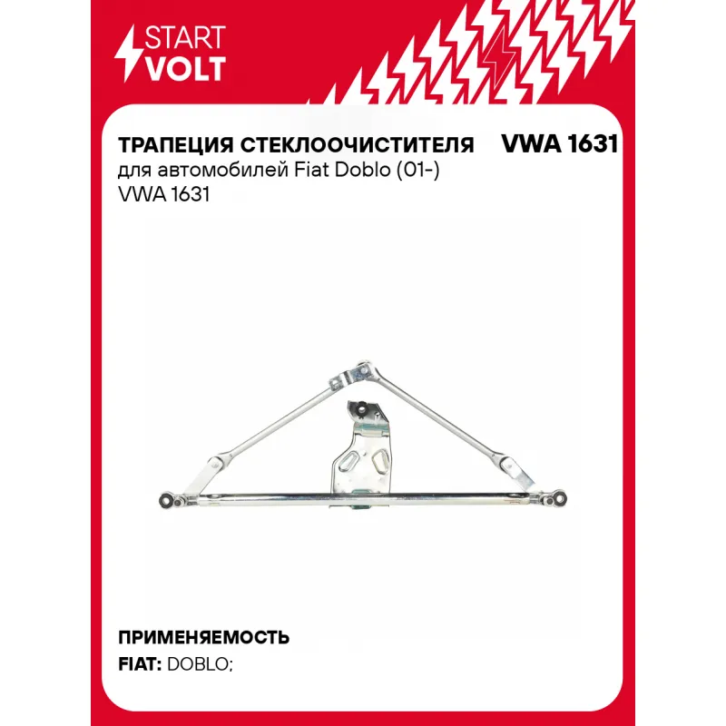 Трапеция стеклоочистителя для автомобилей Fiat Doblo (01-) Характеристики: Артикул: VWA 1631 OEM номера: 51839941, 46748140, 46804975 Материал: Штампованная сталь Количество на автомобиль: 1 Комплектация: Трапеция стеклоочистителя - 1 шт Паспорт изделия/гарантийный талон - 1 шт Гарантия: от 1 года.