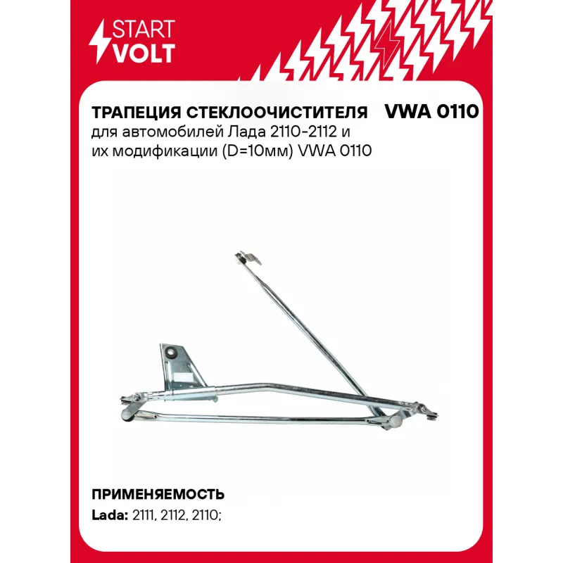 Трапеция стеклоочистителя для автомобилей Лада 2110-2112 и их модификации (D=10мм) Характеристики: Артикул: VWA 0110 OEM номера: 2110-5205010, 2110-5205015 Количество на автомобиль: 1 Материал: Штампованная сталь Сопутствующий товар: Моторедукторы переднего стеклоочистителя: VWF 0110 Для вала диаметром, мм: 10 Диаметр крепёжного отверстия, мм: 10 Подходит для авто: ВАЗ 2111, 2112, 2110, 2111, 2112 Для проверки применяемости отправьте VIN автомобиля через вкладку "Есть вопросы о товаре?" Комплектация: Паспорт изделия/гарантийный талон - 1 шт Трапеция стеклоочистителя - 1 шт Гарантия: от 1 года.