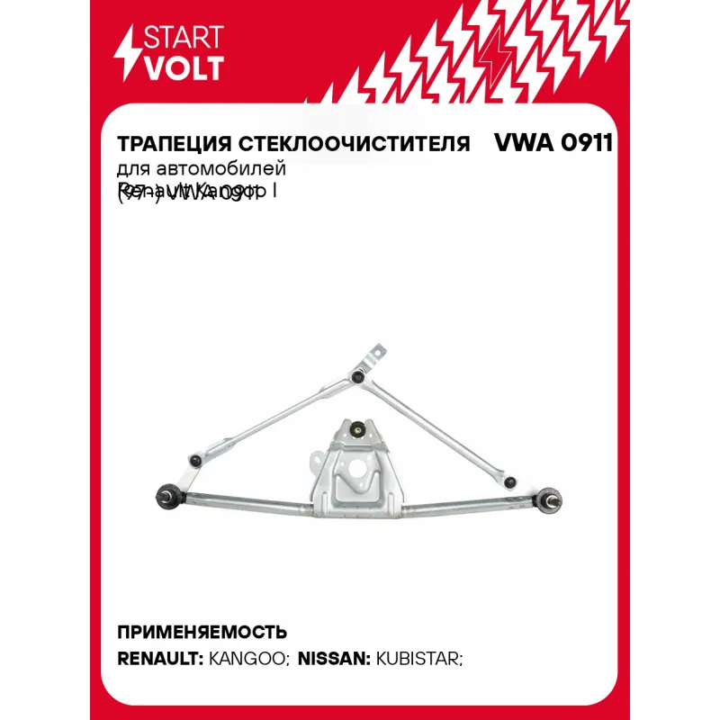 Трапеция стеклоочистителя для автомобилей Renault Kangoo I (97-) Характеристики: Артикул: VWA 0911 OEM номера: 8200122345, 2638800QAF, 0122500Q1M Материал: Штампованная сталь Количество на автомобиль: 1 Комплектация: Паспорт изделия/гарантийный талон - 1 шт Трапеция стеклоочистителя - 1 шт Гарантия: от 1 года.