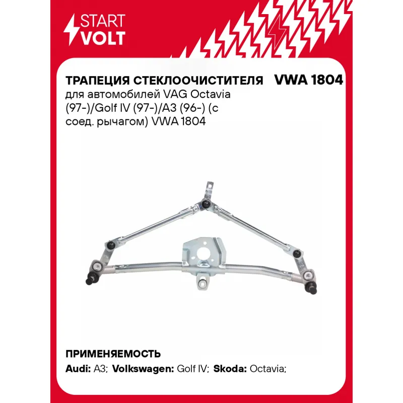 Трапеция стеклоочистителя для автомобилей VAG Octavia (97-)/Golf IV (97-)/A3 (96-) (с соед. рычагом) Характеристики: Артикул: VWA 1804 OEM номера: 1J1955603B, 1J1 955 603 A, 1J1955603 Материал: Штампованная сталь Сопутствующий товар: Моторедукторы переднего стеклоочистителя: VWF 1806 Количество на автомобиль: 1 Подходит для авто: Audi A3 (96-), A3 (96-) Volkswagen Golf IV (97-), Golf IV (97-) Skoda Octavia (96-) Для проверки применяемости отправьте VIN автомобиля через вкладку "Есть вопросы о товаре?" Комплектация: Паспорт изделия/гарантийный талон - 1 шт Трапеция стеклоочистителя - 1 шт Гарантия: от 1 года.