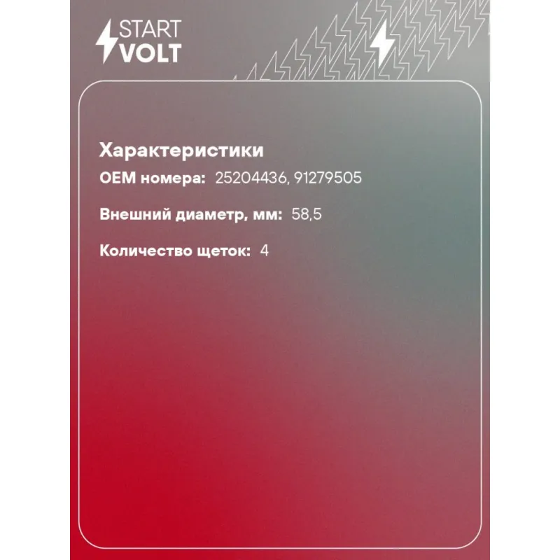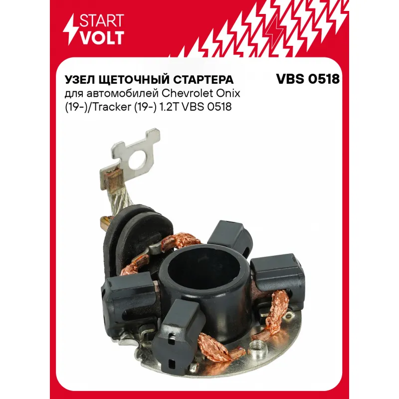 Узел щеточный стартера для автомобилей Chevrolet Onix (19-)/Tracker (19-) 1.2T Характеристики: Артикул: VBS 0518 OEM номера: 25204436, 91279505 Внешний диаметр, мм: 58,5 Размер щетки: 12x4,3 Резьба: M5 Количество щеток: 4 Количество на автомобиль: 1 Комплектация: Щеточный узел - 1 шт Паспорт изделия/гарантийный талон Гаранти... Читать полностью →