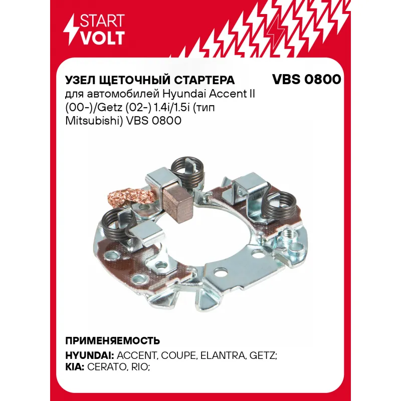 Узел щеточный стартера для автомобилей Hyundai Accent II (00-)/Getz (02-) 1.4i/1.5i (тип Mitsubishi) VBS 0800 StartVolt