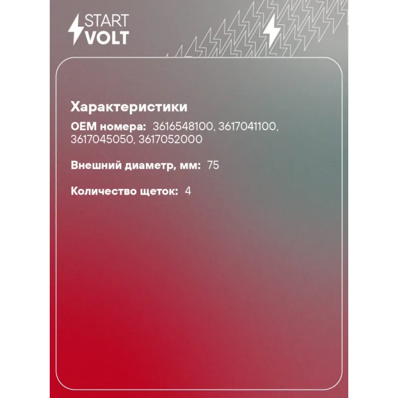 Узел щеточный стартера для автомобилей Hyundai HD65 (04-)/HD78 (06-) с дв. D4DD Характеристики: Артикул: VBS 0871 OEM номера: 3616548100, 3617041100, 3617045050, 3617052000 Внешний диаметр, мм: 75 Размер щетки: 24x8 Резьба: M5 Количество щеток: 4 Количество на автомобиль: 1 Комплектация: Паспорт изделия/гарантийный талон Щето... Читать полностью →