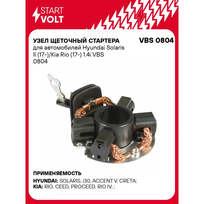 Узел щеточный стартера для автомобилей Hyundai Solaris II (17-)/Kia Rio (17-) 1.4i VBS 0804 StartVolt