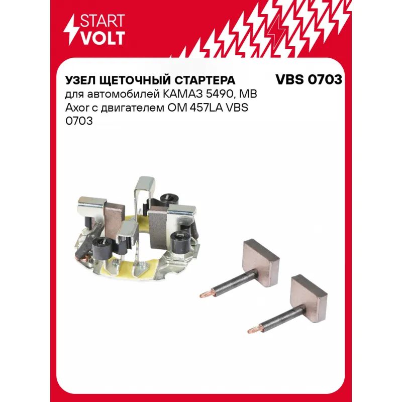 Узел щеточный стартера для автомобилей КАМАЗ 5490, MB Axor с двигателем OM 457LA Характеристики: Артикул: VBS 0703 OEM номера: A0011513914, A0011516814, 0011516814, 0011513914, 11513914, 11516814 Размер щетки: 30x8 Количество на автомобиль: 1 Количество щеток: 4 Внешний диаметр, мм: 79 Резьба: M5 Комплектация: Паспорт изделия/гарантийный талон Щеточный узел - 1 шт Щетки - 2 шт Гарантия: от 1 года.