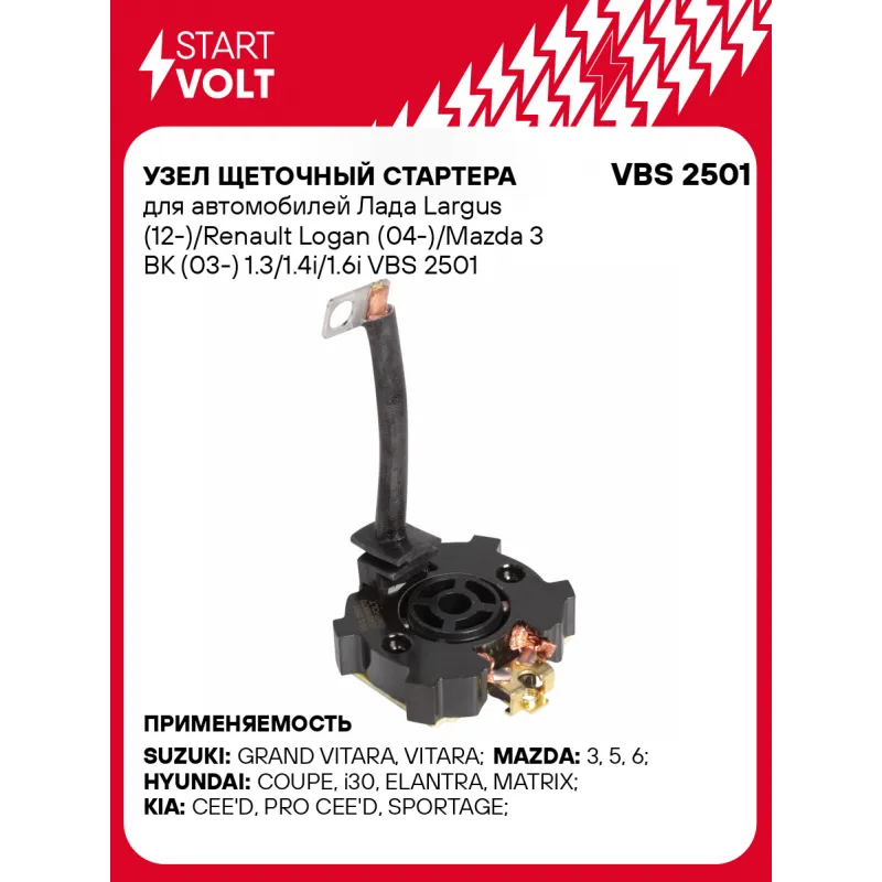 Узел щеточный стартера для автомобилей Лада Largus (12-)/Renault Logan (04-)/Mazda 3 BK (03-) 1.3/1.4i/1.6i VBS 2501 StartVolt