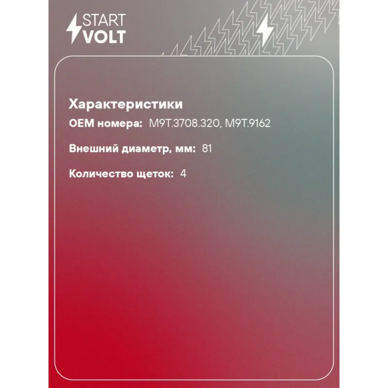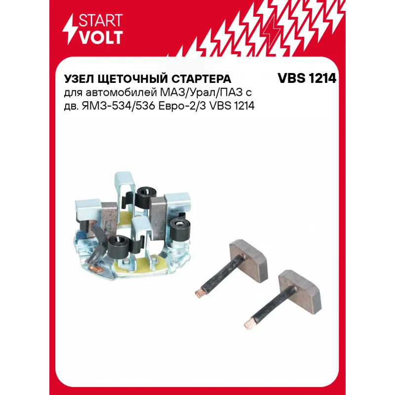 Узел щеточный стартера для автомобилей МАЗ/Урал/ПАЗ с дв. ЯМЗ-534/536 Евро-2/3 Характеристики: Артикул: VBS 1214 OEM номера: М9Т.3708.320, М9Т.9162 Размер щетки: 30x8 Количество на автомобиль: 1 Количество щеток: 4 Внешний диаметр, мм: 81 Резьба: M5 Комплектация: Паспорт изделия/гарантийный талон Щеточный узел - 1 шт Гарантия: от 1 года.