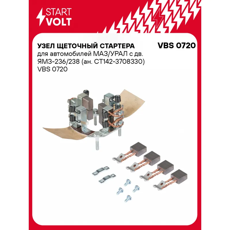 Узел щеточный стартера для автомобилей МАЗ/УРАЛ с дв. ЯМЗ-236/238 (ан. СТ142-3708330) VBS 0720 StartVolt