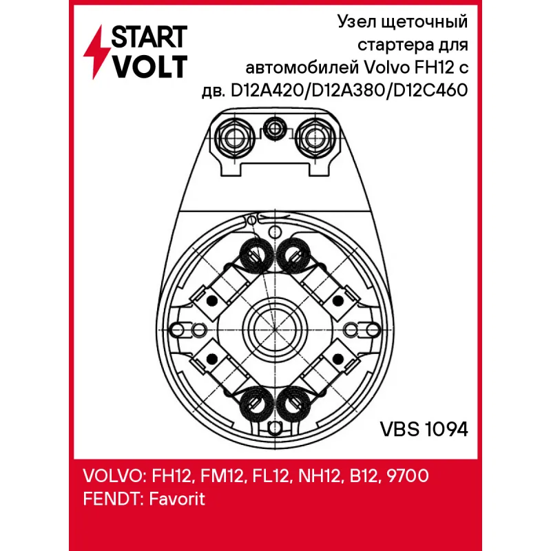 Узел щеточный стартера для автомобилей Volvo FH12 (93-) с дв. D12A420/D12A380/D12C460 Характеристики: Артикул: VBS 1094 OEM номера: 1547049, 20451445, 20536466, 3095060, 3964839, 8112615, 8113165, 8113918, 81139180, 85000186, 2005855376, 0001417065 Внешний диаметр, мм: 117 Размер щетки: 36x12 Резьба: M8 Количество щеток: 4 Колич... Читать полностью →