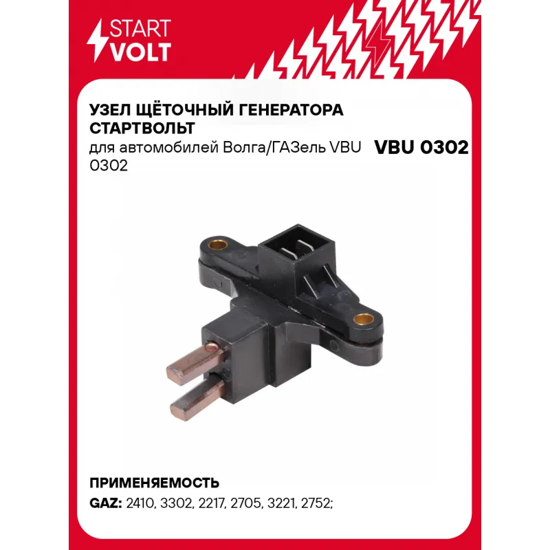 Узел щёточный генератора СтартВОЛЬТ для автомобилей Волга/ГАЗель Характеристики: Артикул: VBU 0302 OEM номера: Г272.3701010-01-СВ, Г272-3701010-СВ Материал щёток: Бронзо-графит Количество на автомобиль: 1 Подходит для авто: ГАЗ 2410, 3302, 2217, 2705, 3221, 2752, 3102, 3110 Для проверки применяемости отправьте VIN автомобиля через вкладку "Есть вопросы о товаре?" Комплектация: Узел щёточный генератора - 1 шт Паспорт изделия/гарантийный талон - 1 шт Гарантия: от 1 года.