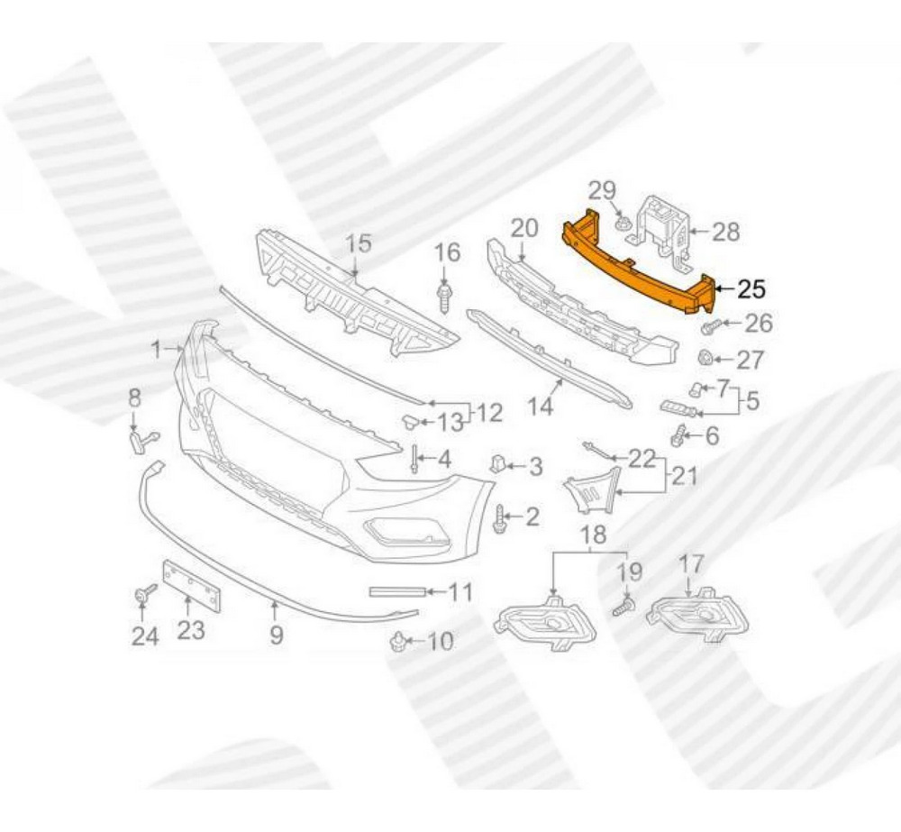 Усилитель переднего бампера для Hyundai Accent V